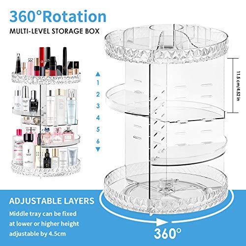 alvorog - منظم مكياج من الفوروج، بتصميم عصري، شفاف، مصنوع من المطاط البلاستيكي، قابل للتعديل، مع 6 رفوف دوارة 360 درجة
