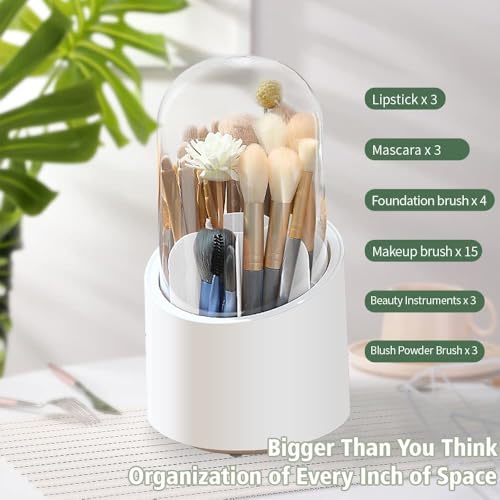 Alybrol - Makeup Brush Holder 360-Degree Rotating Dustproof Makeup Brush Organizer Pen Holder Cosmetic Brush Storage Box For Vanity Home Office Art Supply, white, Fashion