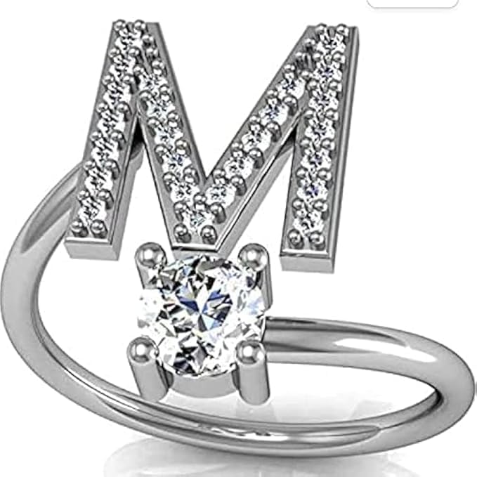 Generic - مجوهرات امال لعيد الحب احدث الماس الامريكي قابل للتعديل قلب الفضة الانيقة الحرف الاول الاسم حرف M خواتم للنساء الفتيات الصديقة الازواج العشاق تصميم انيق - Fr A722 ، كريستال