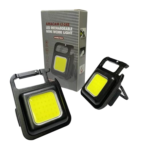 Amacam - Mini Keyring LED Torch-Rechargeable Very Bright COB Work Light Practical Durable Brightness Modes & Strobing Effect Magnetic Base & Convenient Bottle Opener Secure Key Chain Fixing. (Double)