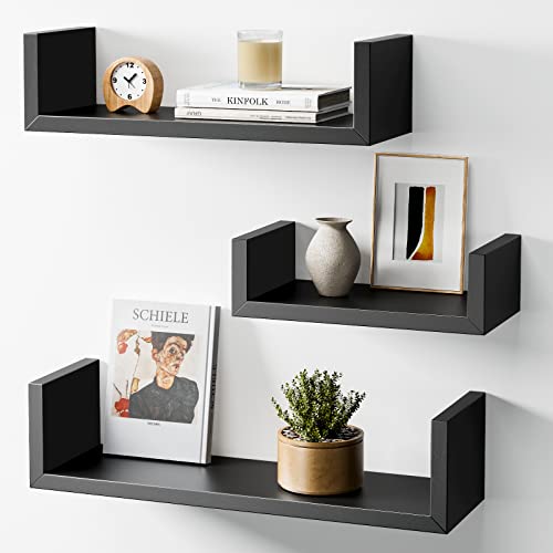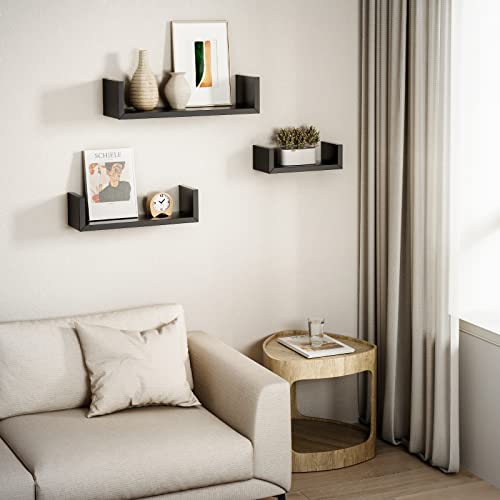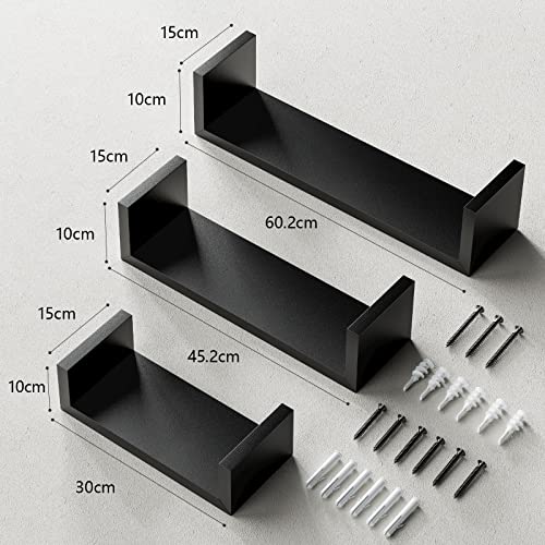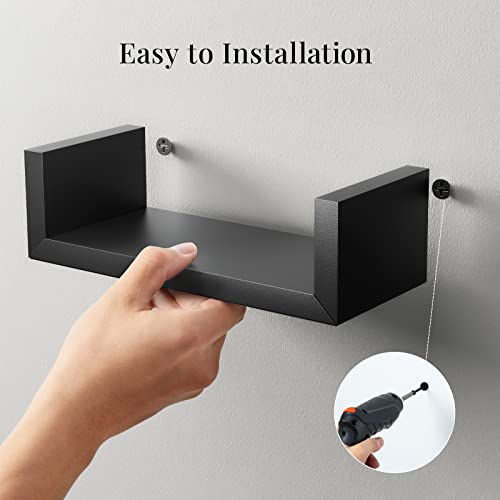 AMADA HOMEFURNISHING - AMADA HOMEFURNISHING Floating Shelves Wall Mounted, Wall Shelf for Bedroom/Bathroom/Living Room/Kitchen, Black Shelves 3 Sizes, U-Shaped