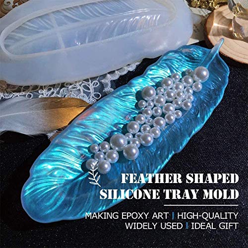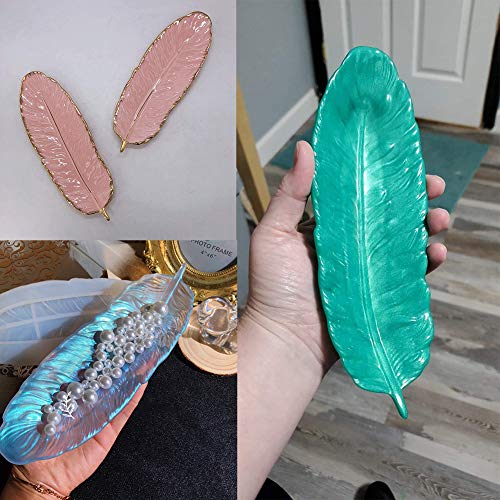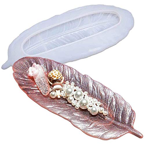 Amadon - قالب راتنج بشكل ريشة، قالب صينية من السيليكون والراتنج، قوالب صب فنية حرفية لتنظيم الخواتم والمجوهرات في صينية الحلي، هدية فريدة للعائلة والاصدقاء