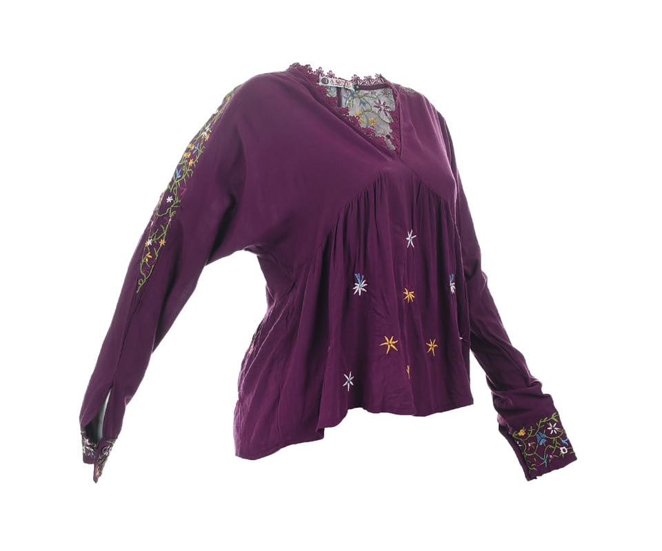 AMANY MAGDY - AMANY MAGDY Women Blouse Decorated Lace V Neck Long Sleeves