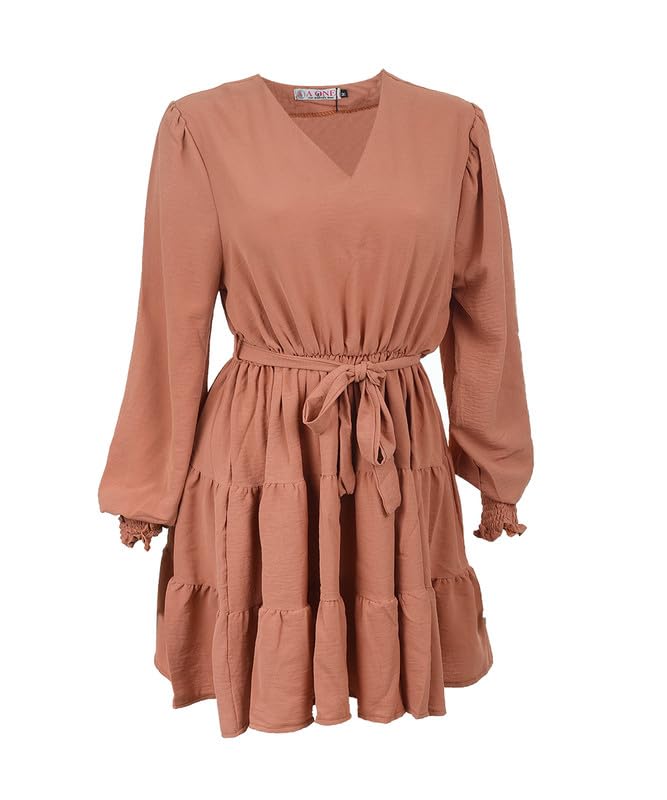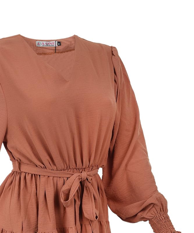AMANY MAGDY - بلوزة سادة بقصة فضفاضة ورقبة شكل V ورباط عند الخصر وأكمام طويلة للنساء من اماني مجدي