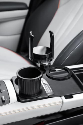 - Car cup holder with built-in wireless charger combines functionality and style.