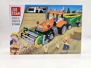Generic - مكعبات بناء مذهلة، جرار مزرعة مع مقطورة بلون أخضر للحصاد، 358 قطعة بلون برتقالي