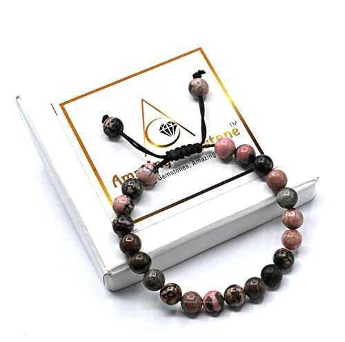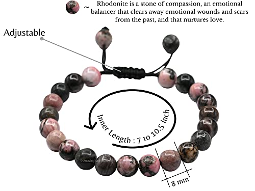 Amazing Gemstone - Amazing Gemstone Crystal Bracelet for Women Men Unisex Chakra Bracelets, A+ Grade Adjustable 8mm Healing Crystal Stone Beaded Bracelet, 6.7 inches, Rhodonite, crystal