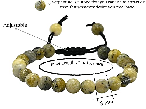 Amazing Gemstone - Amazing Gemstone Crystal Bracelet for Women Men Unisex Chakra Bracelets, A+ Grade Adjustable 8mm Healing Crystal Stone Beaded Bracelet, 6.7 inches, Serpentine, crystal
