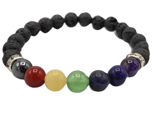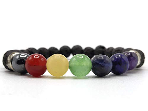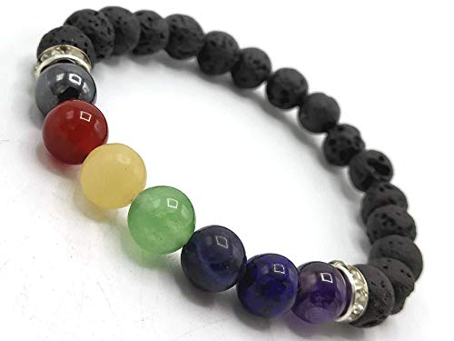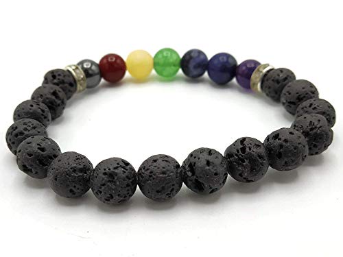Amazing Gemstone - Amazing Gemstone Men Women Lava Rock Stone Bracelet, 8mm Lava Black Bead Bracelet Pulseras Para Hombres Mujer Stocking Stuffers, 6.7 inch, Lava (Chakra), crystal