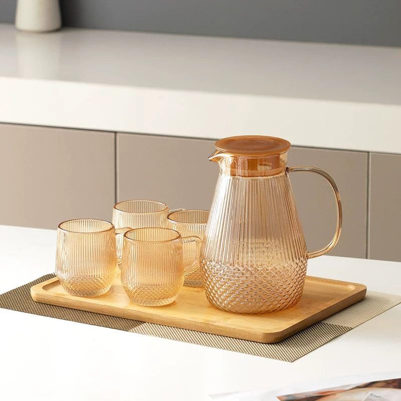 Generic - طقم لوتس جولد المذهل، يتضمن دورق وبراد 5 قطع 🥰 وشربات حراري دورق+4 كوب مج🔥🔥، تصميم جودة عالية من الزجاج المقاوم للحرارة والبرودة، - من جينيريك