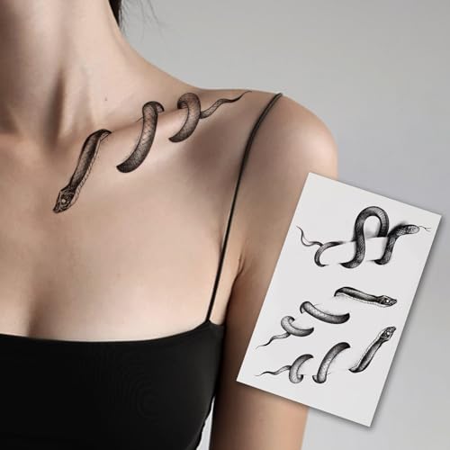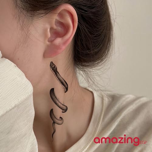 THE PACK - AmazingEGP | Realistic Snake Temporary Tattoo, Black Matte Non-Glow, Waterproof Body Sticker for Women and Girls, Cosmetic-Grade Transfer Film, Party Halloween Cosplay