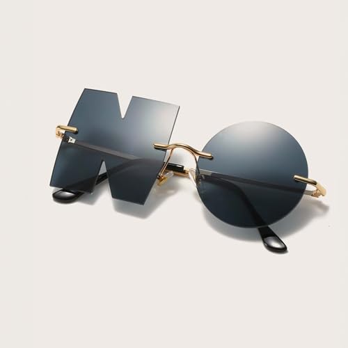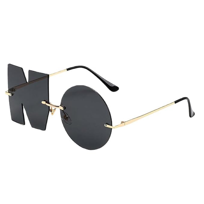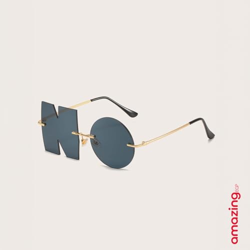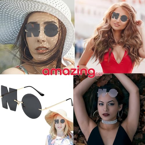 THE PACK - AmazingEGP | Rhinestone Party Sunglasses with NO Letter Design, Black Lenses, Gold Frame, Crystal Embellishments, PC Frame, Resin Lenses, Boho Style