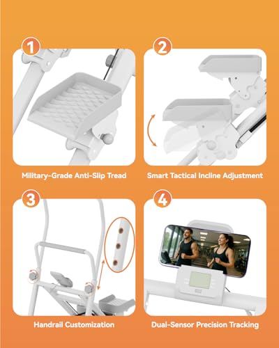 - 【Real Time Progress Tracking】This home stair stepper is equipped with a clear counter that shows time, steps, and calories in real time. This stepper has a built-in phone holder, making it easy to follow workouts, use fitness apps, or listen to music, making training more fun.