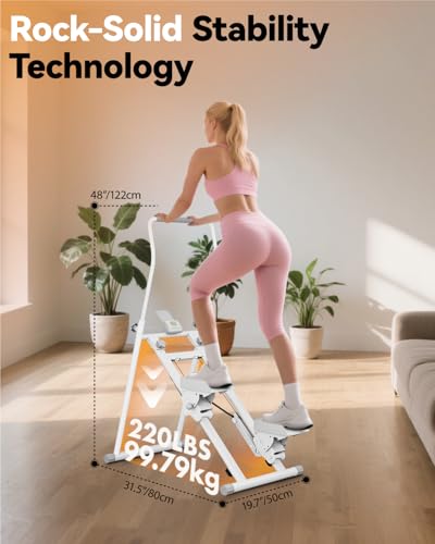 - 【Powerful & Joint Friendly】With a 20cm stride length + 45° motion path, this stepper exercise machine effectively activates full-body muscles, greatly reducing knee joint pressure, suitable for all ages. As a high-quality stair stepper, it delivers excellent training efficiency: 20 minutes ≈ 60 minutes of cycling/120 minutes of yoga, enjoying gym-level results at home.