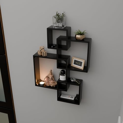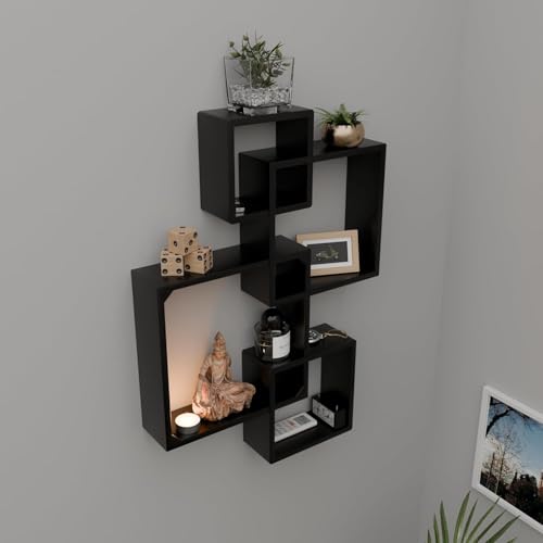 Amazon Brand - Umi - Amazon Brand - Umi Engineered Wood Floating Cube Shelves - Intersecting Wall Mounted Box Shelves for Bedrooms, Living Rooms & More - Set of 4 (Black)