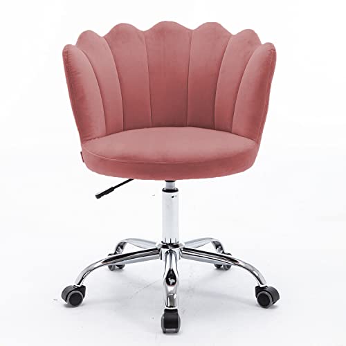 Amazon Brand - Umi - Amazon Brand – Umi Modern Ergonomic Mid-Back Velvet Swivel Chair with Height Adjustment and Wheels - Comfortable Crown Task Desk Office Executive Chair for Bedroom and Living Room, No Arms in Pink
