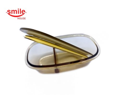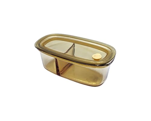 Smile House - Amber Glass Food Container - Oval Splitted 2 Compartments - Airtight Silicone Seal (21x11x8cm)