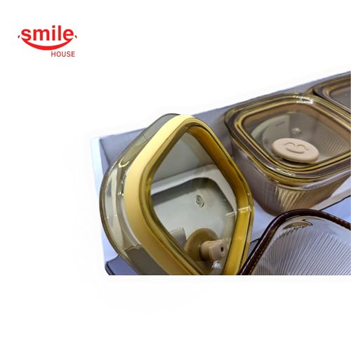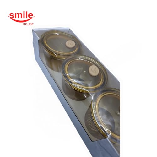 Smile House - Amber Glass Jars - Airtight Silicone Seal Cansiters 3Pcs Set (Round 240m)