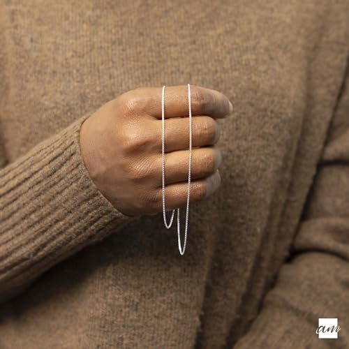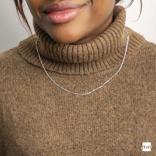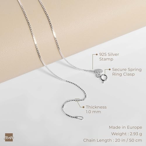 Amberta - Amberta Women 925 Sterling Silver 1 mm Venice Box Chain Necklace: 50 cm / 20 inch