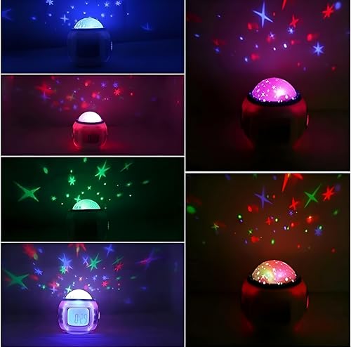 - This device fuses an alarm clock with a disco ball light to create a romantic mood when the alarm goes off, featuring a soft LED night light and star‑sky projection on the ceiling or wall.