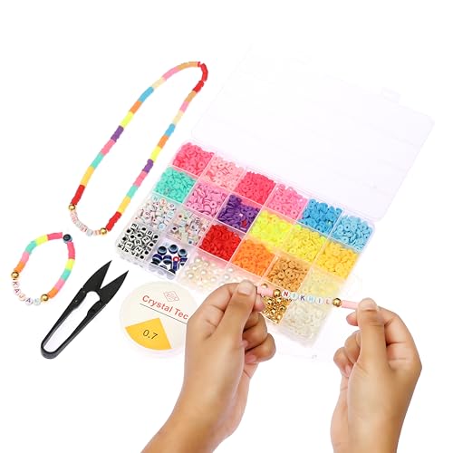 - مجموعة كاملة لصنع المجوهرات: تتضمن 24 نوعًا مختلفًا من الخرز الملون، و10 أمتار من الخيط المرن، وقطاعة وحقيبة من الجوت للتخزين.