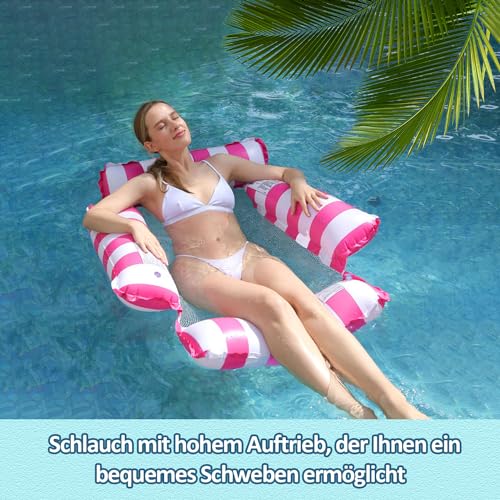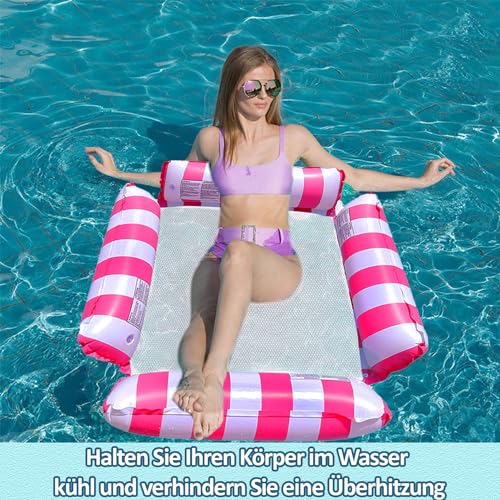 - 【4-in-1 Pool Hammock】4 in 1 design, can be used as a hammock, leisure chair, swimming ball and sports seat. One product can achieve 4 main functions, allowing you to have fun anytime, anywhere. Even if you are not a good swimmer, you can have fun in the water with this pool hammock set.