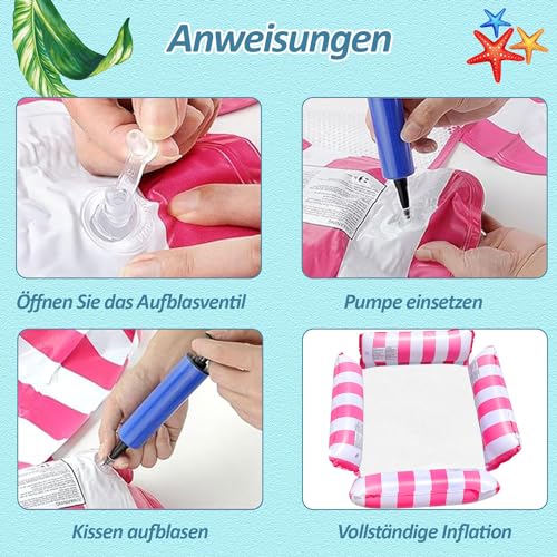 Amebleak - Inflatable Hammock, 4 in 1 Set Pool Hammock, Portable Inflatable Floating Bed, Sea Floating Hammock, Water Hammock for Swimming Pool Beach and Outdoor