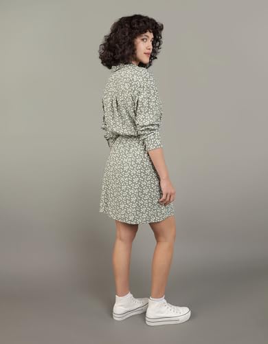 American Eagle - American Eagle Women Long-Sleeve Faux Wrap Mini Shirt Dress