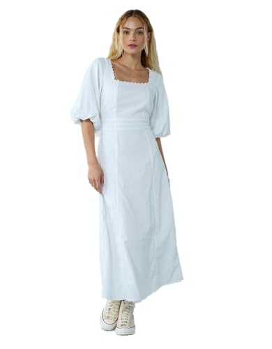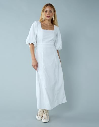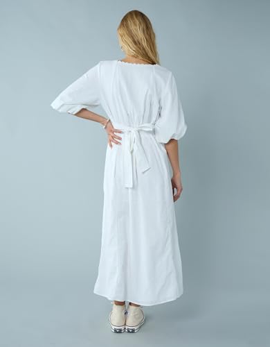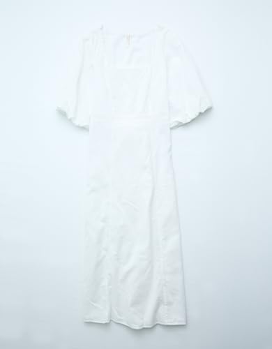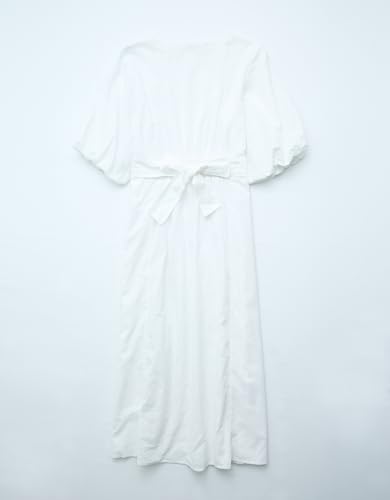 American Eagle - فستان متوسط الطول من مزيج الكتان بأكمام منفوخة ورباط خلفي للنساء من امريكان ايجل