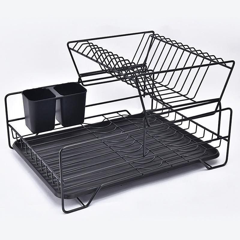Generic - American Kitchen Utensil Organizer - Large 2 Tier Black Dish Rack, Durable Metal Design to End Drawer Mess