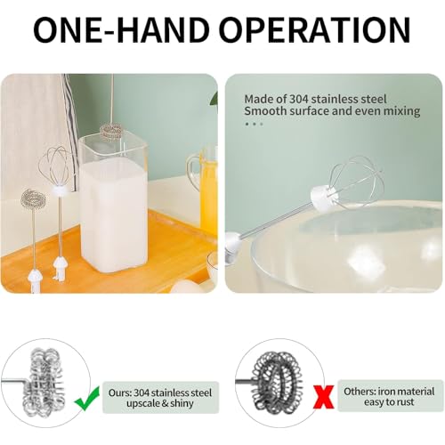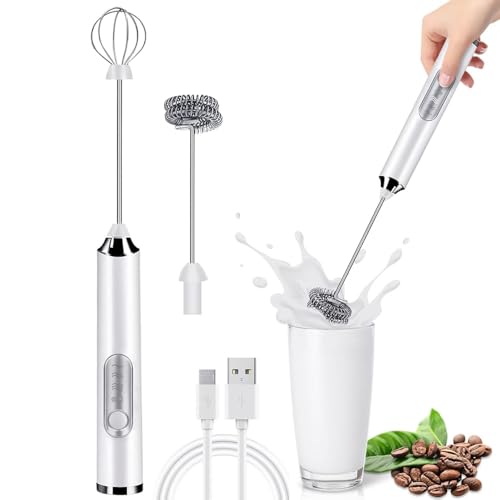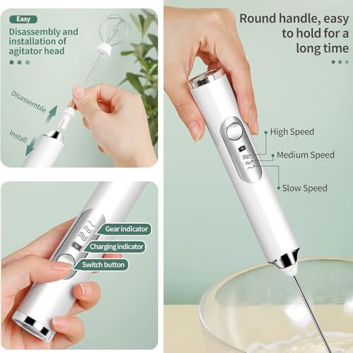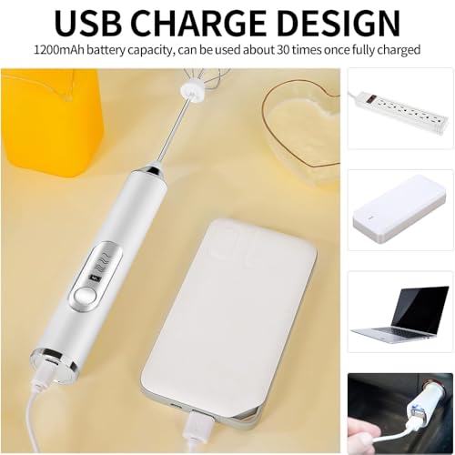 AMERTEER - مضرب بيض كهربائي لخفق البيض ورغوة اللبن، أداة خفق لبن لاسلكية محمولة لبياض البيض والكريمة وخليط الكيك وخفق القهوة، أداة مطبخ سهلة الاستخدام لتحضير الللاتيه والكابتشينو والخبز