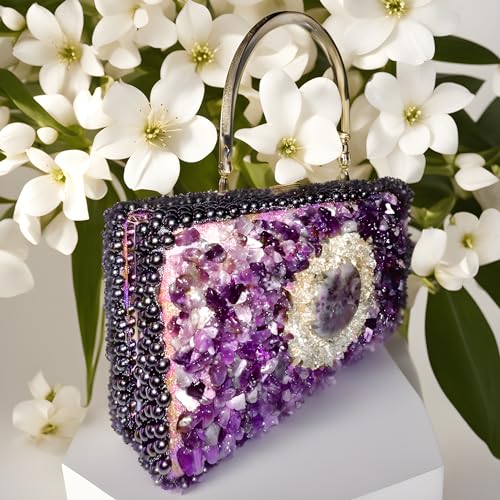 Generic - Amethyst SZ- Handmade Women Clutch-شنطه سواريه هاندميد مطعمة بأحجار الأماتيست الكريمة