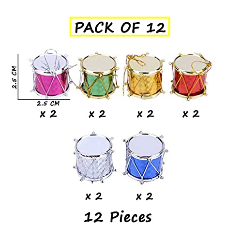 AMFIN - AMFIN® (Pack of 12) Drum Decoration for Tree/Christmas Tree Decoration Items/Christmas Gift Decor/Xmas Tress Decoration/Drum Tree Decoration Box/Gift Ornaments for Tree