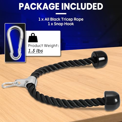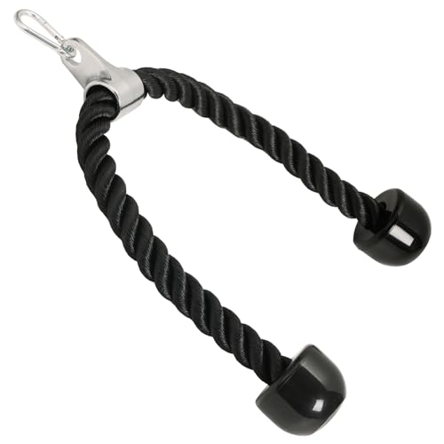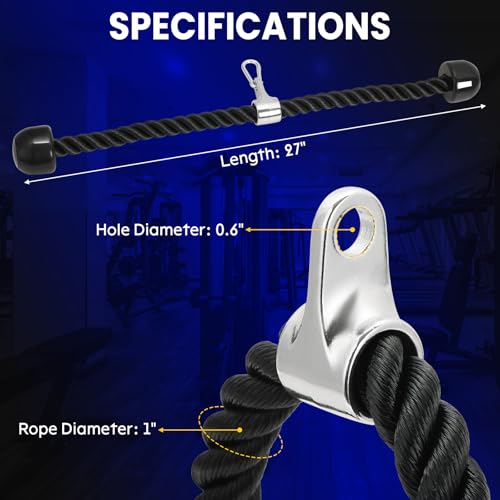 - مقاس حبل ثلاثي الرؤوس: الطول 27 انش؛ حبل بقطر 1 انش وفتحة بقطر 0.6 انش. مثالي للضغط على ثلاثية الرؤوس وسحب الوجه وتمارين الصفوف المختلفة، هذا الحبل المصنوع من النايلون مثالي للاستخدام مع أحزمة المقاومة وروتين السحب لأسفل.