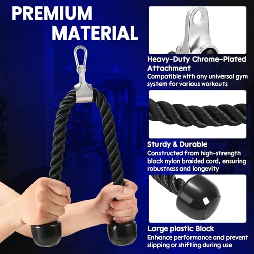 - مريحة وصحية: تتسخ معظم حبال صالة الألعاب الرياضية مع الاستخدام المتكرر. امتلاك حبل النايلون الخاص بك يحافظ على نظافته وصحته. يُعد ملحق كيبل الحبل ثلاثي الرؤوس هذا استثمارًا ذكيًا وسهل الحمل ويضمن تمرينًا أكثر تخصيصًا.