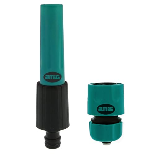 Amig - مجموعة الري من اميج، فوهة رش خرطوم الحديقة مع موصل سريع، فوهة مياه قابلة للتعديل بضغط عالي - صناعة اسبانية (1/2 انش)