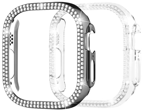 AMiRiTE- SMART GADGETS STORE - AMiRiTE ADS144 Bling Diamond Rhinestone Ony Bumper Watch Case Cover Without Glass Compatible with Apple iWatch Series 49mm Ultra/Ultra 2 (49MM [ Bling CASE Combo Pack of 2 ], Black & Transparent)