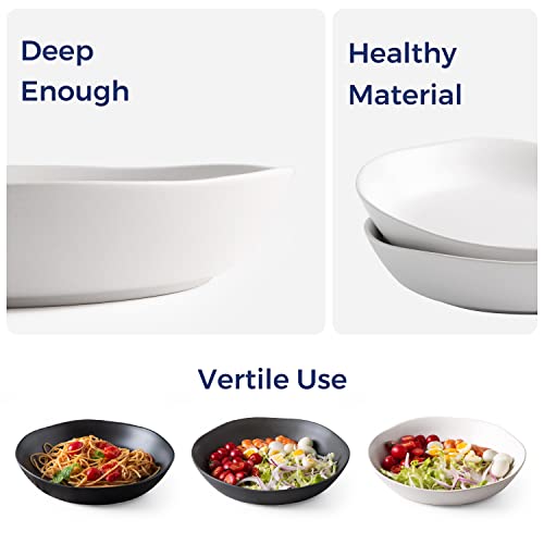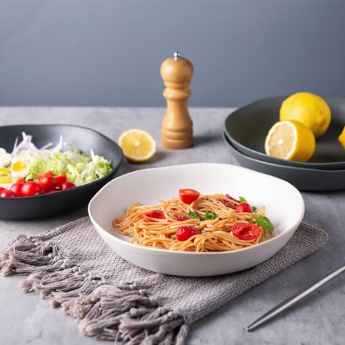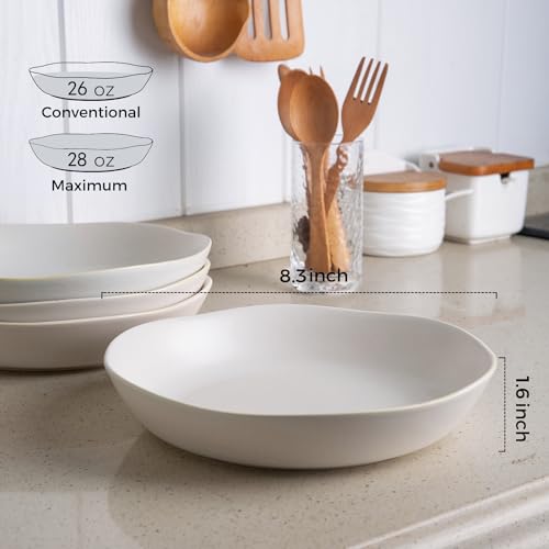 AmorArc - امور ارك اوعية مكرونة من السيراميك مقاس 8.3 انش مجموعة 4 الخزف الحجري سعة 28 اونصة للمطبخ والفرن والميكروويف وغسالة الصحون مع حافة مموجة لوجبة سلطة المعكرونة ابيض غير لامع