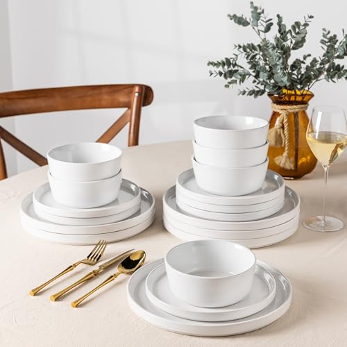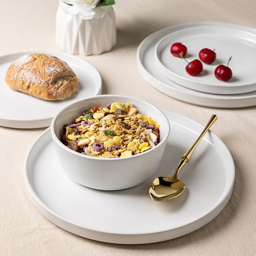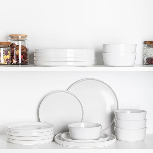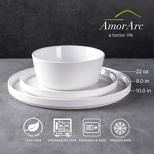AmorArc - AmorArc Dinnerware Sets for 4, 12 Piece Stoneware Plates and Bowls Set, Scratch Resistant Plates Set, Dishwasher & Microwave Safe Ceramic Dishes - (White, Service for 4)