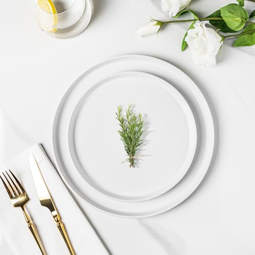 - 【ELEGANT and MULTI-PURPOSE】These flat plate sets not only bring a modern and minimalist aesthetic to your table but also offer practical functionality. With their ergonomic shape, they are easy to handle and provide a comfortable grip. Additionally, their stackable design allows for efficient storage, saving valuable space in your cupboards or shelves. Moreover, our dinnerware set is microwave, dishwasher, and freezer safe, providing utmost convenience for your everyday needs