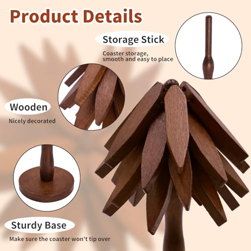 - Easy to Use: The tree coasters is composed of 6 small pieces of wood, remove a coaster from the bracket, no need to flatten it first, directly pick up the appliance from it and slowly put it down, because of the action of gravity, it will automatically unfold and play its due role