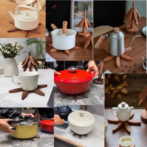 - 4 Coasters and 1 Stand: This hot cooking wooden tripod has 4 coasters and 1 storage stand to form a beautiful tree, this unique design adds natural beauty to your dining table and countertop