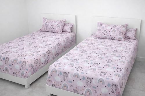 Generic - Amreya Cotton Elastic Baby Sheet Set, Pink Unicorn and Rainbow Pattern, 6 Pieces, Height 30 cm, Anti-Pilling