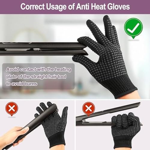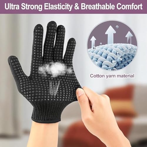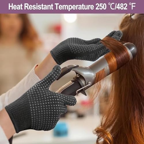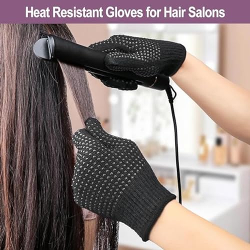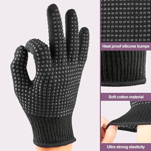 Amuer - 2 Pcs Heat Resistant Gloves for Hair Salon,Professional Heat Proof Mitts with Silicone Bumps for Hair Styling Curling Flat Iron Wand Hot-Air Brushes Sublimation Gloves Heat Proof Gloves-Black