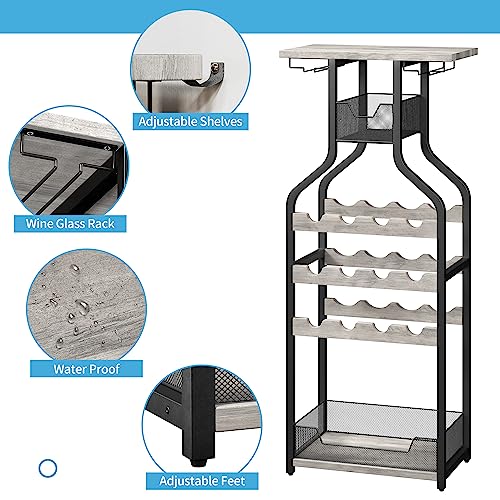 Amyove - Amyove Wine Rack Freestanding Floor,Metal Wine Rack Wine Bottle Holders Stands for Floor,Grey Bar Stand Wine Storage Organizer Display Rack Table