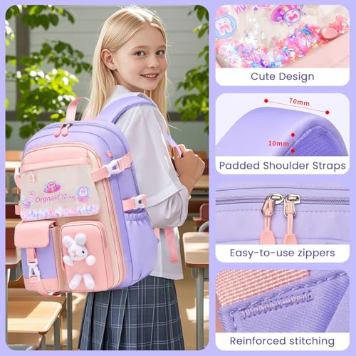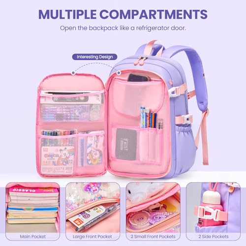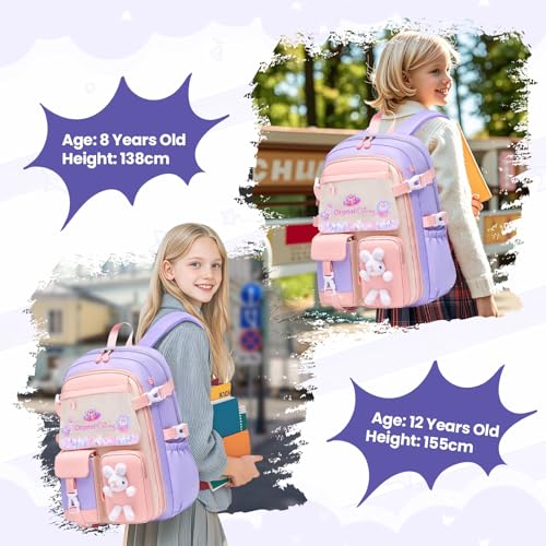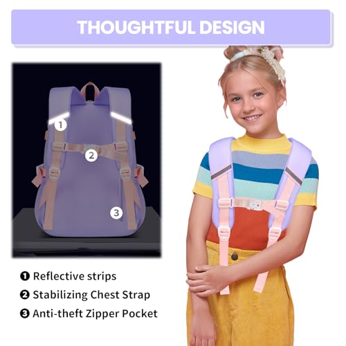 Amythe - شنطة ظهر مدرسية للبنات للصف الثاني والخامس من اميث، شنطة ظهر مدرسية 24 لتر مع حزام للصدر، شنطة ظهر كاجوال خفيفة الوزن لطيفة للمدرسة أو السفر