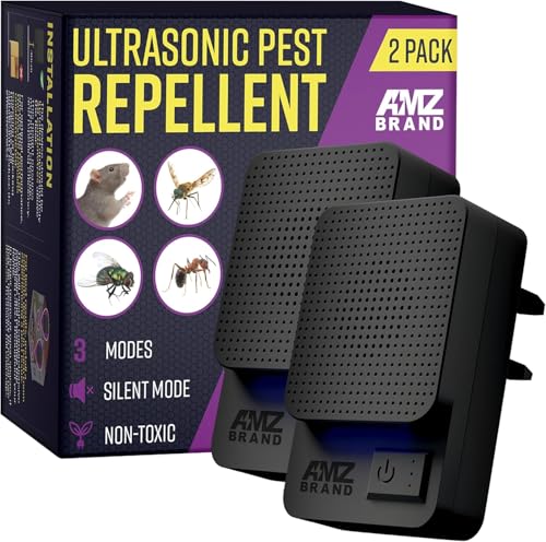 AMZ BRAND - طارد حشرات بالموجات فوق الصوتية، طارد قوي للفئران بوضعي عمل، جهاز مكافحة الحشرات بنطاق تردد واسع للفئران والجرذان والبعوض والصراصير والعث والنمل من ايه ام زد براند، قطعتان
