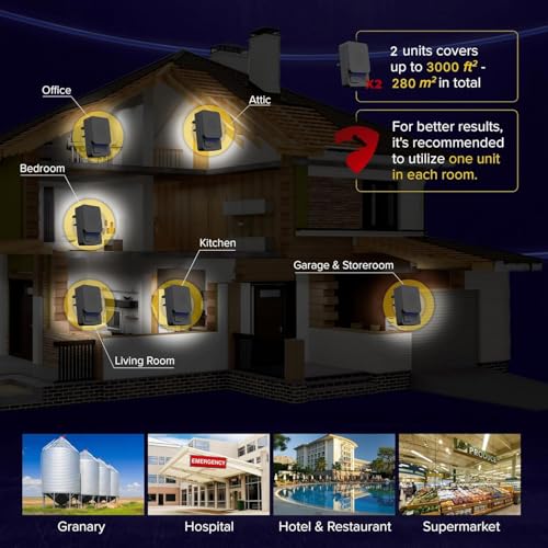 - ✅ تغطية واسعة وآمنة للاستخدام: هذا الطارد للفئران مناسب للمساحات الداخلية التي تصل إلى 140 م² (إجمالي 280 م²). جهاز طرد الحشرات ايه ام زد براند صديق للإنسان والحيوانات الأليفة، ويُبقي بعيدًا جميع أنواع الأعداء الصغيرة مثل الفئران والجرذان والبعوض والذباب والخنافس والصراصير والعث والنمل وبق الفراش وغيرها.