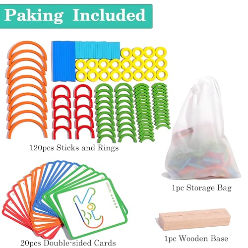 Generic - لعبة جيغسو مسلية ومفيدة للغاية لجميع اطفالنا - لعبة مونتيسوري تتكون من 20 بطاقة وعصي خشبية ملونة، تهدف إلى تعزيز التركيز والتفكير المنطقي والتطور