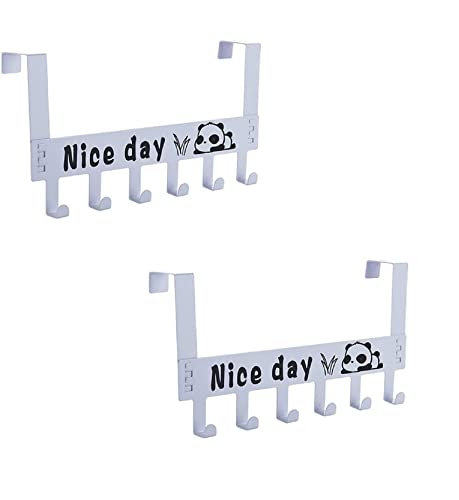 Spaceshoop - ANADIK Nice Day Theme Over The Door 6 Carbon Steel Hook Hanger Nail-Free Hanging Rack for Cloth Pants Hat Towel (White, 2)